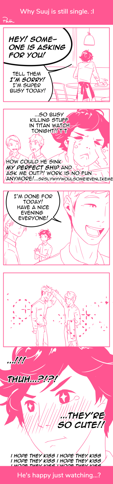 But that's not it yet! We tweeted about how there'll be something extra for you! And we took some time to let our accidentally FAV CHRAACTRE SUUJ show himself in a few panels! °˖ ✧◝(○ ヮ ○)◜✧˖ ° Again, thanks for sticking with us to this point! Have a good one guys! ゚✧